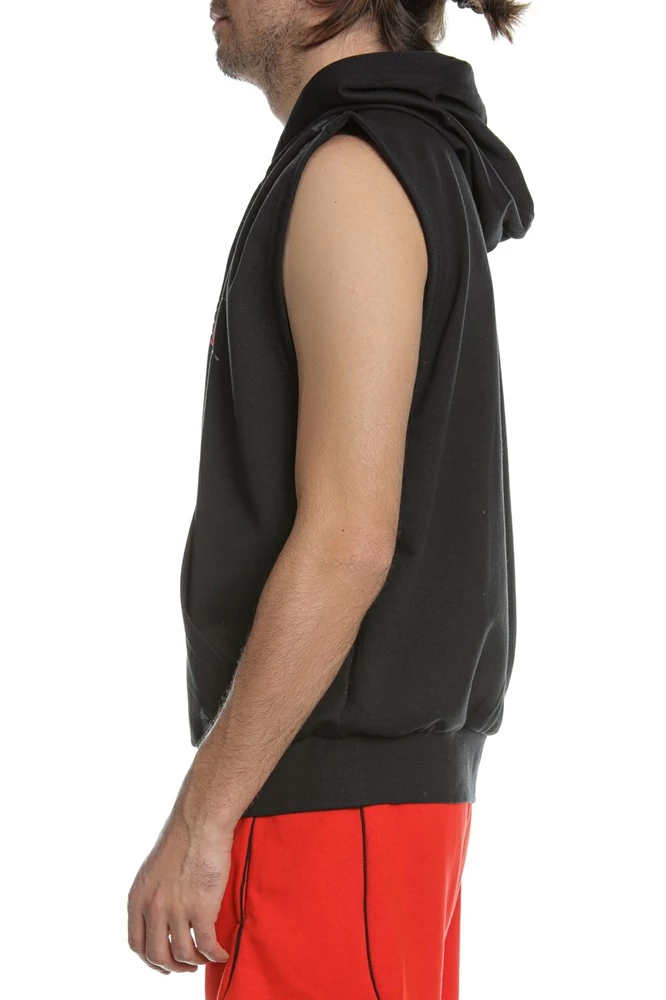 Ανδρική φούτερ μπλούζα adidas Performance σε μαύρο χρώμα, με στάμπα μπροστά.. Είναι αμάνικη, σε ίσια γραμμή, από βαμβακερή σύνθεση. Διαθέτει κουκούλα με κορδόνι και τσέπη καγκουρό μπροστά.