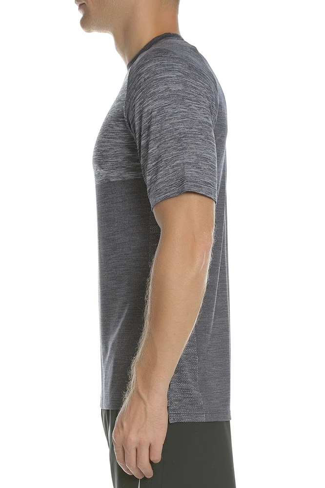 Ανδρική κοντομάνικη αθλητική μπλούζα στις αποχρώσεις του γκρι από δροσερό, ανάλαφρο ύφασμα που ακολουθεί την κίνηση του σώματος, προσφέροντας μοναδική άνεση και ελευθερία κινήσεων.