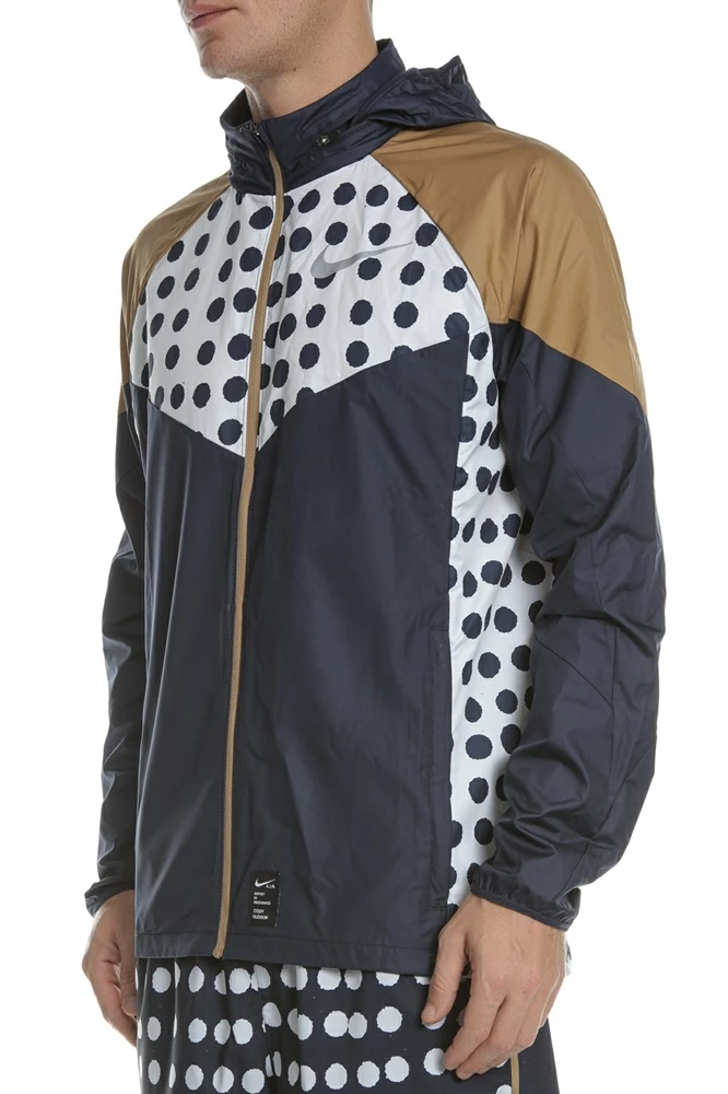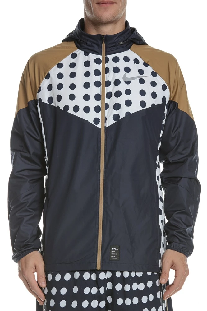 Ανδρικό αντιανεμικό jacket NΙKΕ WINDRUNNER ARTIST σε μπλε και καφέ απόχρωση με πουά μοτίβο. Από ανάλαφρη σύνθεση με υδροαπωθητικό φινίρισμα και σχέδιο εμπνευσμένο από την τέχνη του Cody Hudson που επιμελείται τα σήματα Swoosh (A.I.R.) αυτήν τη σεζόν. Μακριά μανίκια με λάστιχο στις μανσέτες και όρθιος γιακάς. Διαθέτει κουκούλα που αναδιπλώνεται στον γιακά όταν δεν χρησιμοποιείται και δύο τσέπες με φερμουάρ στα πλάγια. Ανακλαστική λεπτομέρεια στο πίσω μέρος και παιχνιδιάρικο μοτίβο μάτια στην πλάτη. Κλείνει με φερμουάρ μπροστά.