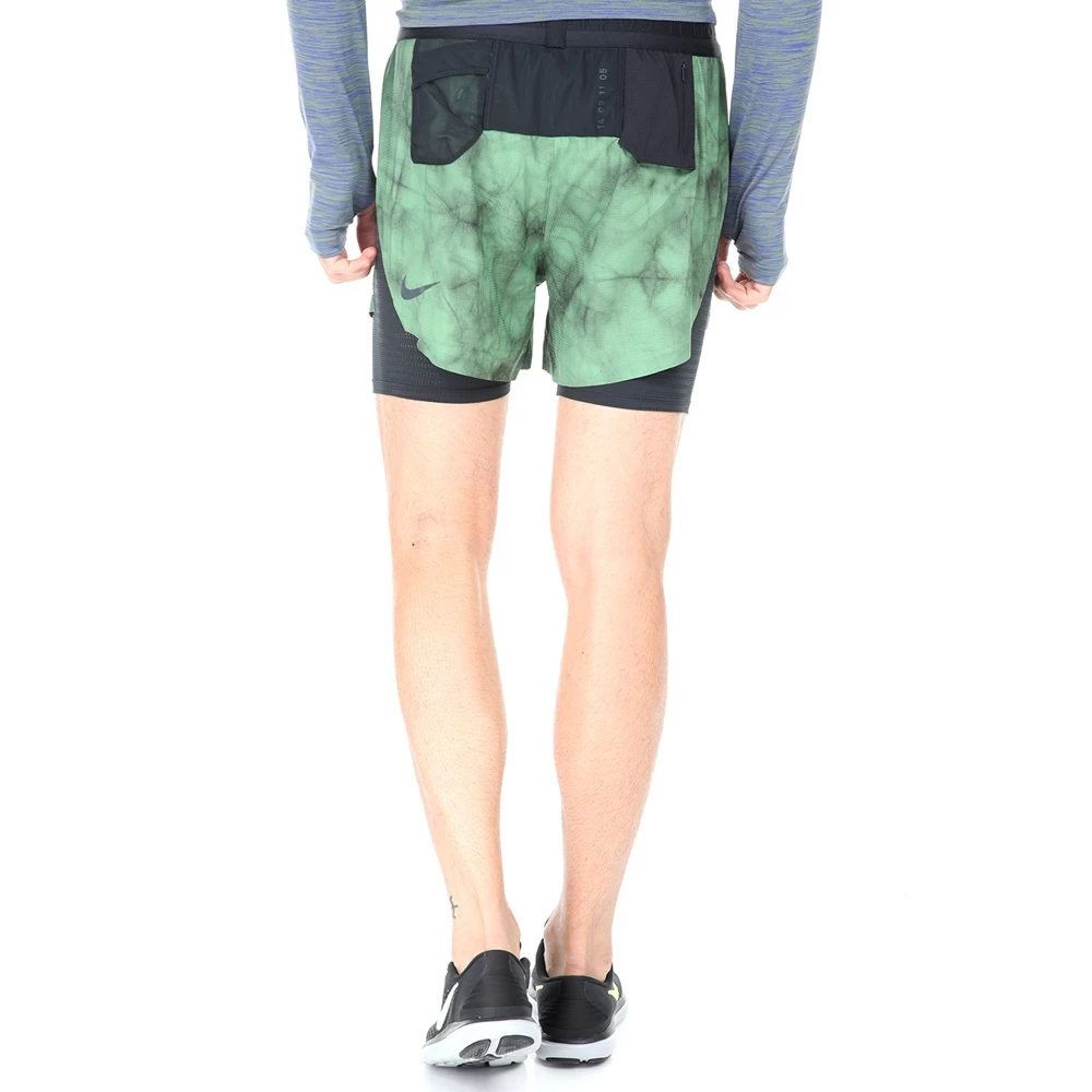 Ανδρικό σορτς για τρέξιμο NIKE σε πράσινη και μαύρη απόχρωση. Από ανάλαφρη ύφανση, με εσωτερικό κολάν για μεγαλύτερη κάλυψη και υποστήριξη. Διαθέτει λάστιχο με κορδόνι στη μέση και δύο τσέπες πίσω. Ζώνες αερισμού για πιο δροσερή αίσθηση και τεχνολογία Dri-FIT που απομακρύνει τον ιδρώτα.