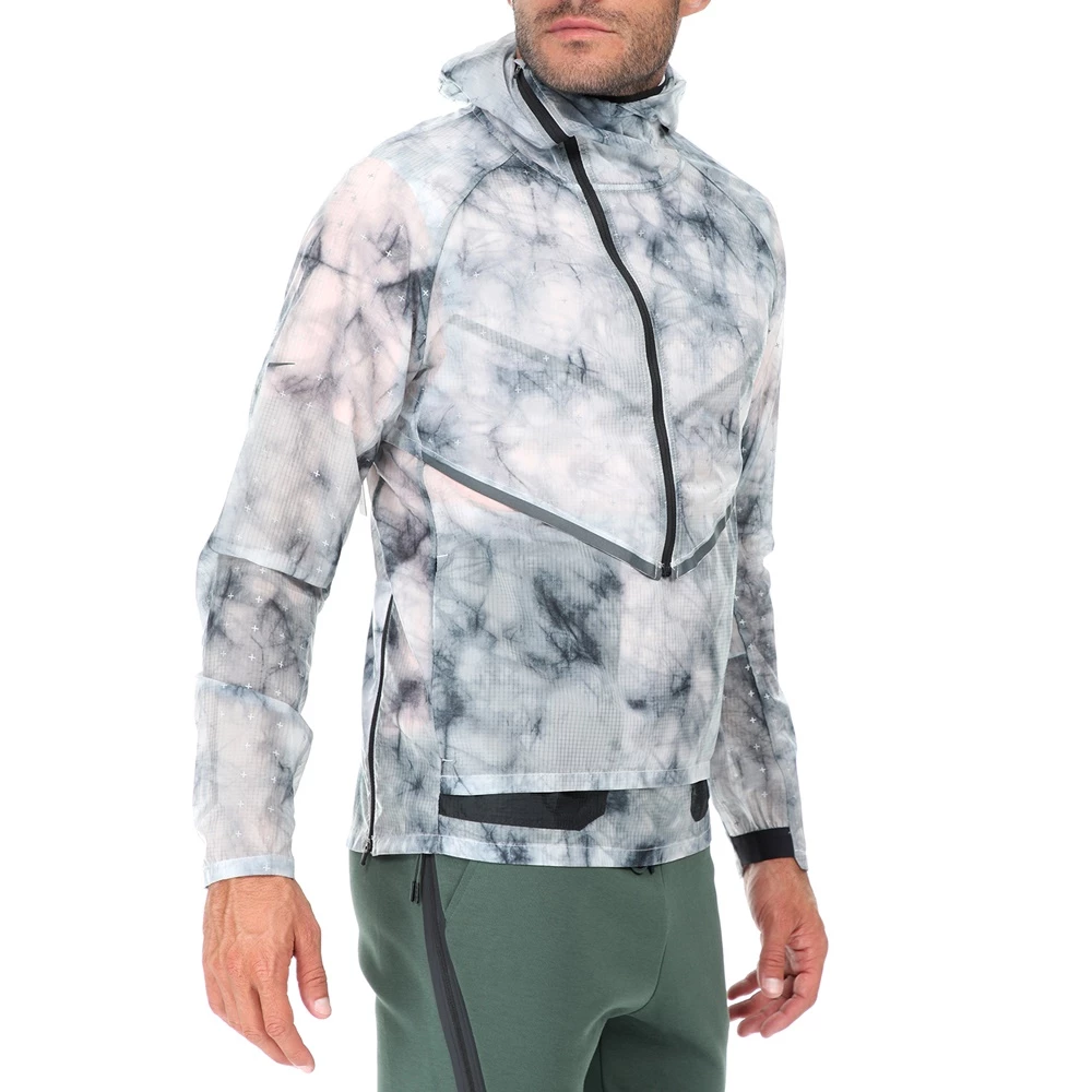 Σχεδιασμένο για προστασία από την ελαφριά βροχή και τον αέρα, το τζάκετ Nike προσφέρει ευέλικτη άνεση με σχεδίαση 2 σε 1. Το υδροαπωθητικό ύφασμα σημαίνει ότι δεν χρειάζεται να περιμένεις μέχρι να σταματήσουν οι βροχές για να βγεις για τρέξιμο. Όταν οι ρυθμοί ανεβαίνουν, άνοιξε το φερμουάρ για να αποκαλύψεις ένα ανάλαφρο αμάνικο τζάκετ. Το υδροαπωθητικό ύφασμα εξασφαλίζει στεγνή αίσθηση, ώστε να τρέχεις με σιγουριά σε αντίξοες καιρικές συνθήκες. Η κουκούλα τύπου scuba ανεβαίνει πάνω από το πιγούνι για πρόσθετη κάλυψη από τον άνεμο.Η τσέπη στο κέντρο πίσω προσφέρει χώρο για την αποθήκευση του τζάκετ σου.