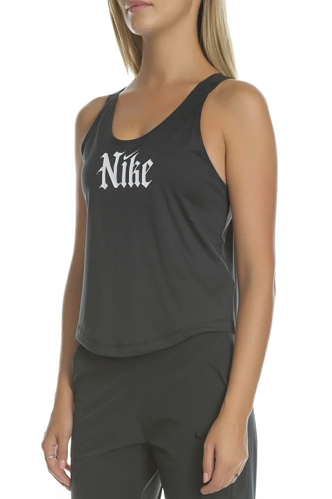 Γυναικεία αμάνικη μπλούζα σε μαύρη απόχρωση με ριχτή γραμμή και αθλητική πλάτη που χαρίζουν ελευθερία κινήσεων.