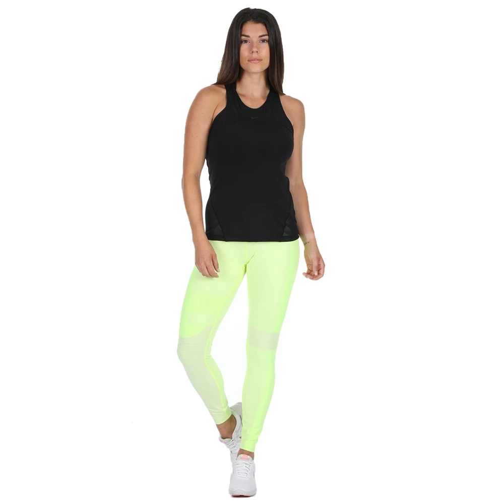 Γυναικεία αμάνικη μπλούζα NIKE μαύρη, με ημιδιάφανες φάσες. Σε εφαρμοστή γραμμή, από ύφασμα με τεχνολογία Pro HyperCool για στεγνή και δροσερή αίσθηση. Έχει στρογγυλή λαιμόκοψη και αθλητική πλάτη για ελευθερία κινήσεων.