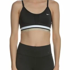 Γυναικείο αθλητικό μπουστάκι NIKE GL DK INDY BRA σε μαύρο χρώμα. Σφιχτή εφαρμογή, με πλέγμα ανάμεσα στο στήθος για πιο δροσερή αίσθηση. Λάστιχο κάτω από το στήθος με ριγέ λευκό-χρυσό μοτίβο για μέγιστη στήριξη. Τύπωμα Swoosh και U λαιμόκοψη. Λεπτές τιράντες με ιδιαίτερο σχέδιο στην πλάτη.