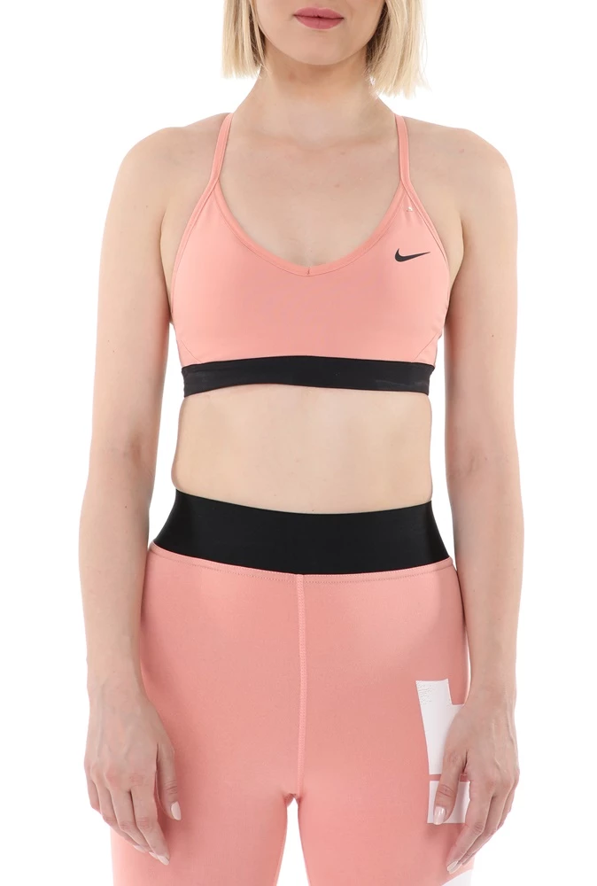 Αθλητικό μπουστάκι με εφαρμογή συμπίεσης και αθλητική πλάτη με τιράντες, για στήριξη και πλήρη ελευθερία κινήσεων στη διάρκεια της άσκησης. Διαθέτει τεχνολογία Dri-FIT για στεγνή και άνετη αίσθηση. Ιδανικό για ήπια σωματική άσκηση, όπως ποδηλασία, χορό και καρδιαγγειακές ασκήσεις.