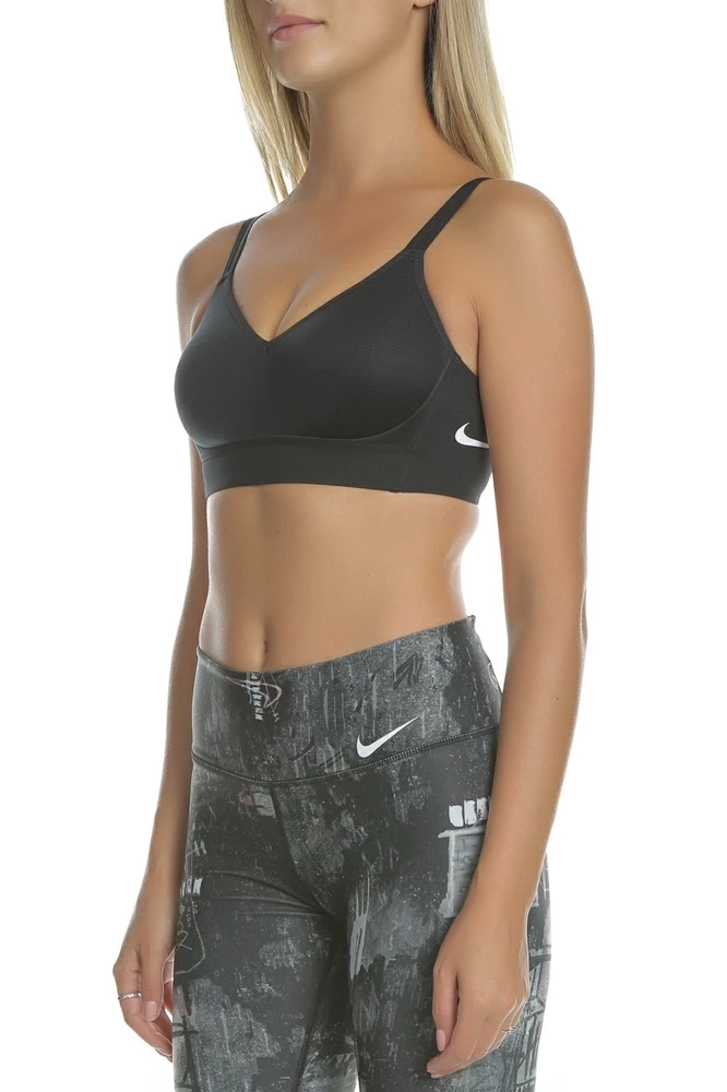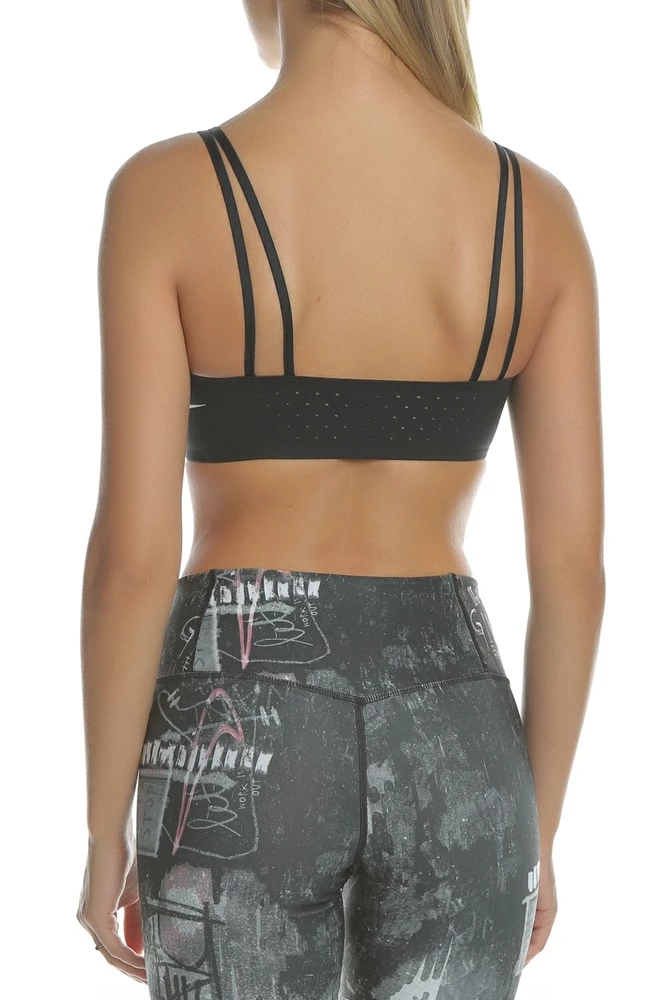 Γυναικείο αθλητικό μπουστάκι με εφαρμογή συμπίεσης και πλάτη με τιράντες, για στήριξη και πλήρη ελευθερία κινήσεων στη διάρκεια της άσκησης. Διαθέτει τεχνολογία Dri-FIT για στεγνή και άνετη αίσθηση. Ιδανικό για ήπια σωματική άσκηση, όπως ποδηλασία, χορό και καρδιαγγειακές ασκήσεις.