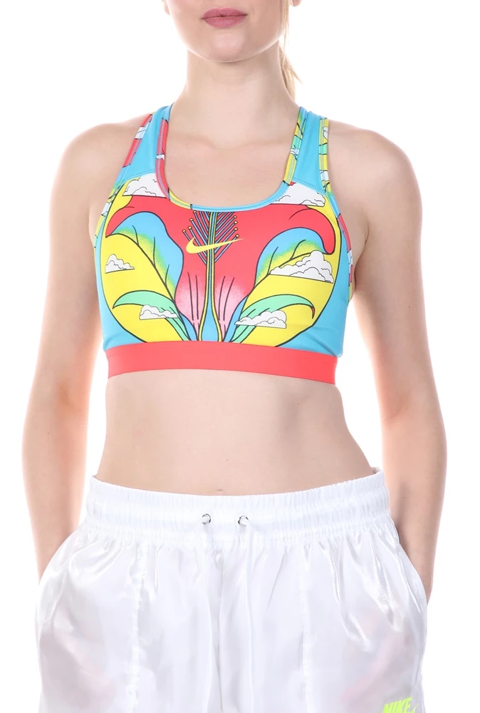 Γυναικείο αθλητικό μπουστάκι Nike κατασκευασμένο από μαλακό ύφασμα που απομακρύνει τον ιδρώτα από το δέρμα και σε κράτα στεγνή και άνετη. Διαθέτει σταθερή εφαρμογή για ελευθερία κινήσεων στη διάρκεια της άσκησης.