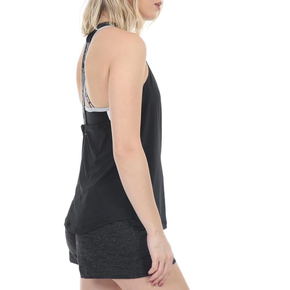 Γυναικείο αθλητικό τοπ NIKE NP DRY ELASTIKA σε μαύρο χρώμα. Από ανάλαφρη ύφανση, με τεχνολογία Dri-FIT για στεγνή και άνετη αίσθηση. Σε ίσια γραμμή, με φαρδιές ελαστικές τιράντες που καταλήγουν χιαστί στην πλάτη και με U λαιμόκοψη.