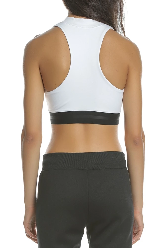 Γυναικείο crop top σε λευκή απόχρωση με φερμουάρ στη λαιμόκοψη. Χαρίζει άνετη εφαρμογή και ελευθερία κινήσεων.