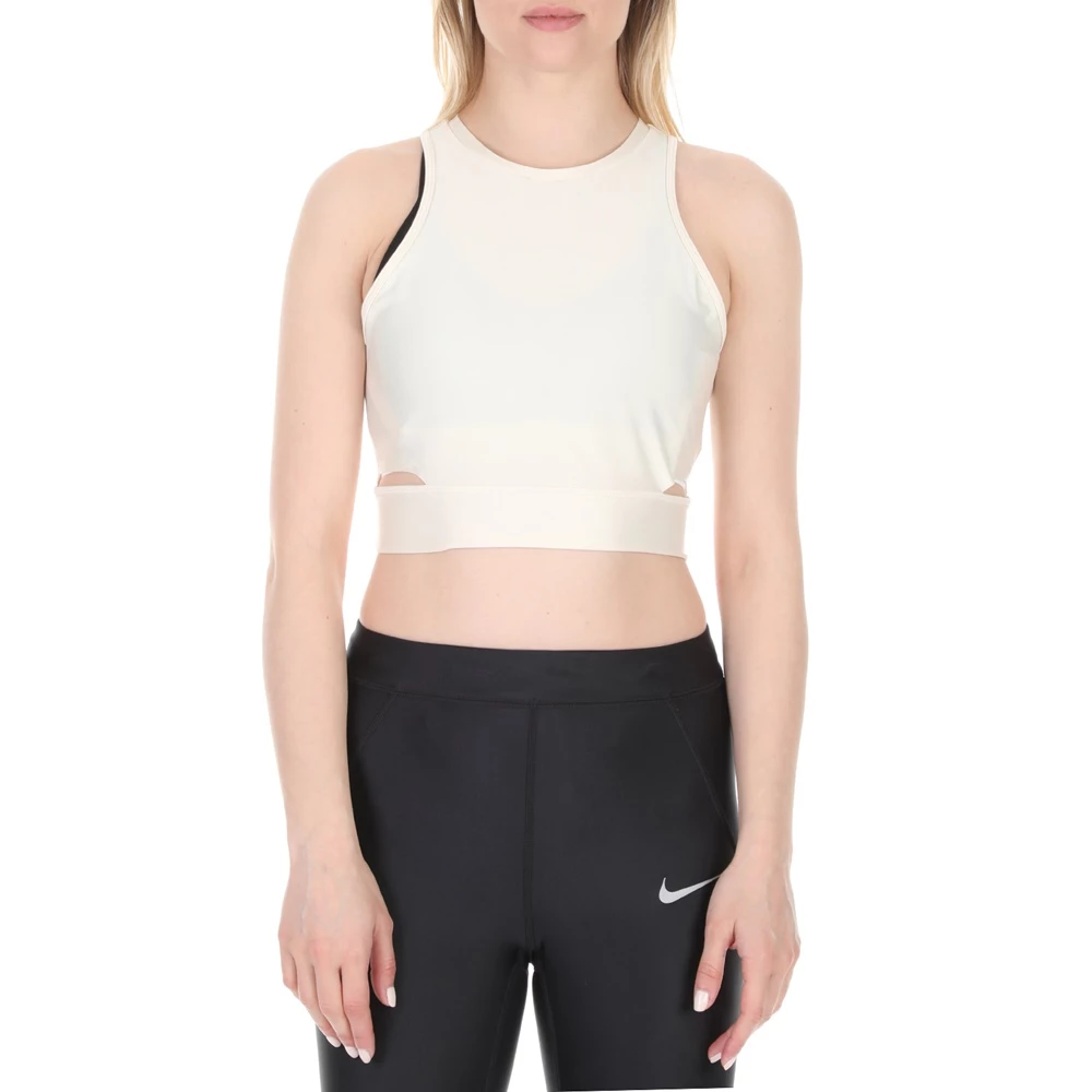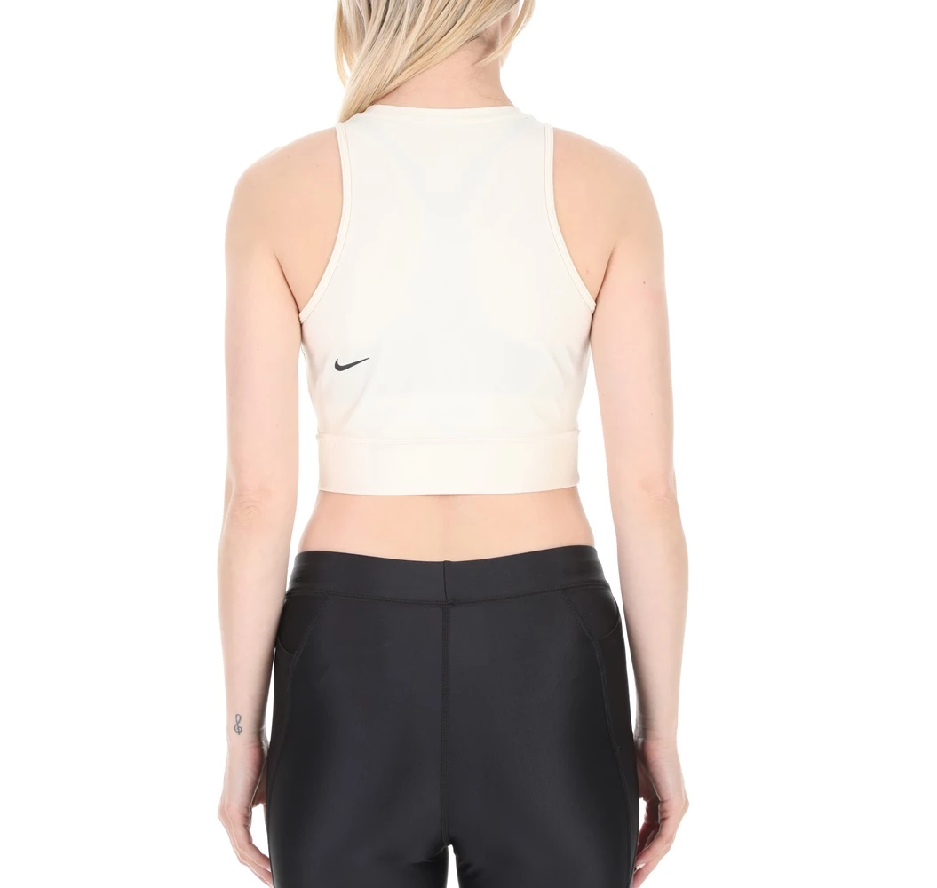 Γυναικείο crop top από τη NIKE σε λευκό χρώμα. Είναι αμάνικο, με στρογγυλή λαιμόκοψη. Άνετο λάστιχο στη βάση για στεθερή εφαρμογή και ανοίγματα στα πλαϊνά. Ιδανική επιλογή για athleisure look.