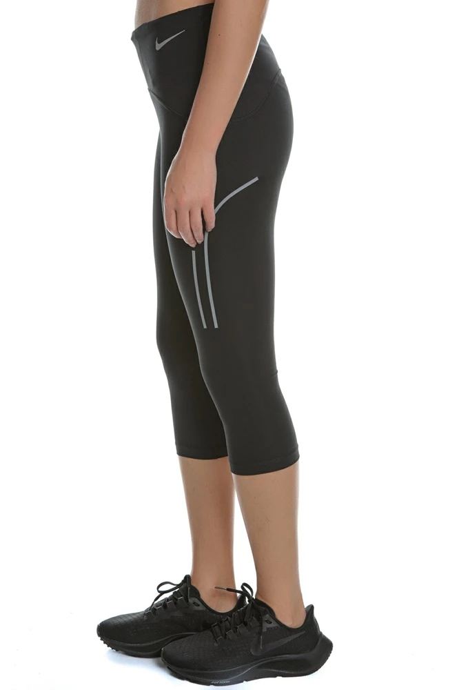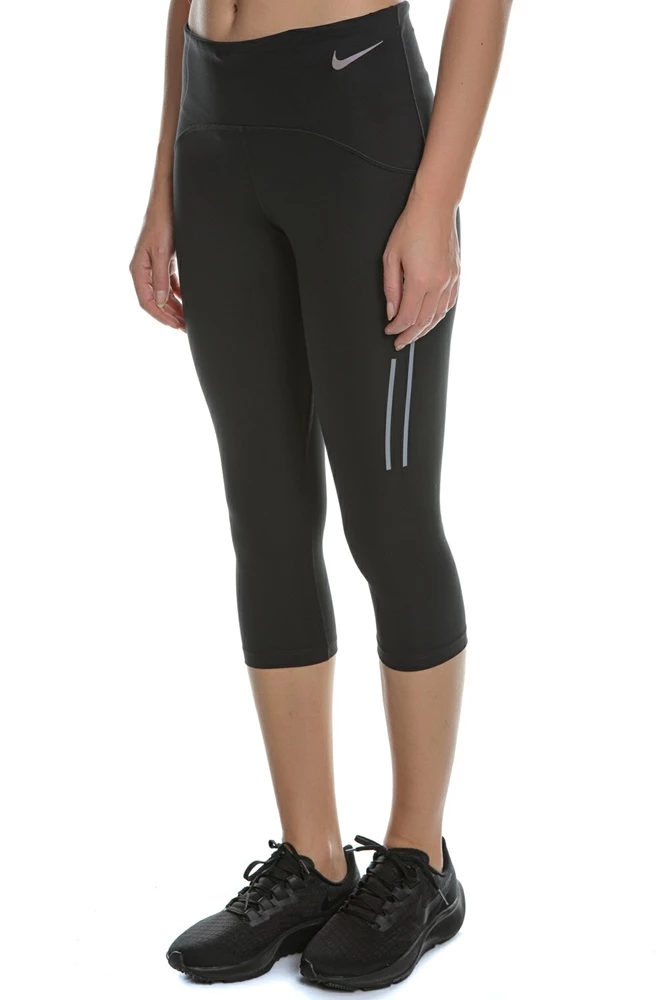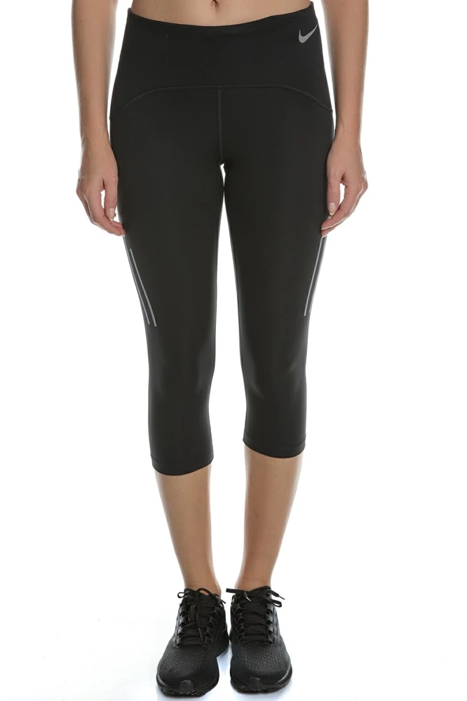 Γυναικείο capri κολάν NIKE SPEED σε μαύρο χρώμα. Σφιχτή εφαρμογή που αγκαλιάζει και στηρίζει το σώμα. Με ανακλαστικές λεπτομέρειες για μεγαλύτερη ορατότητα σε συνθήκες χαμηλού φωτισμού.