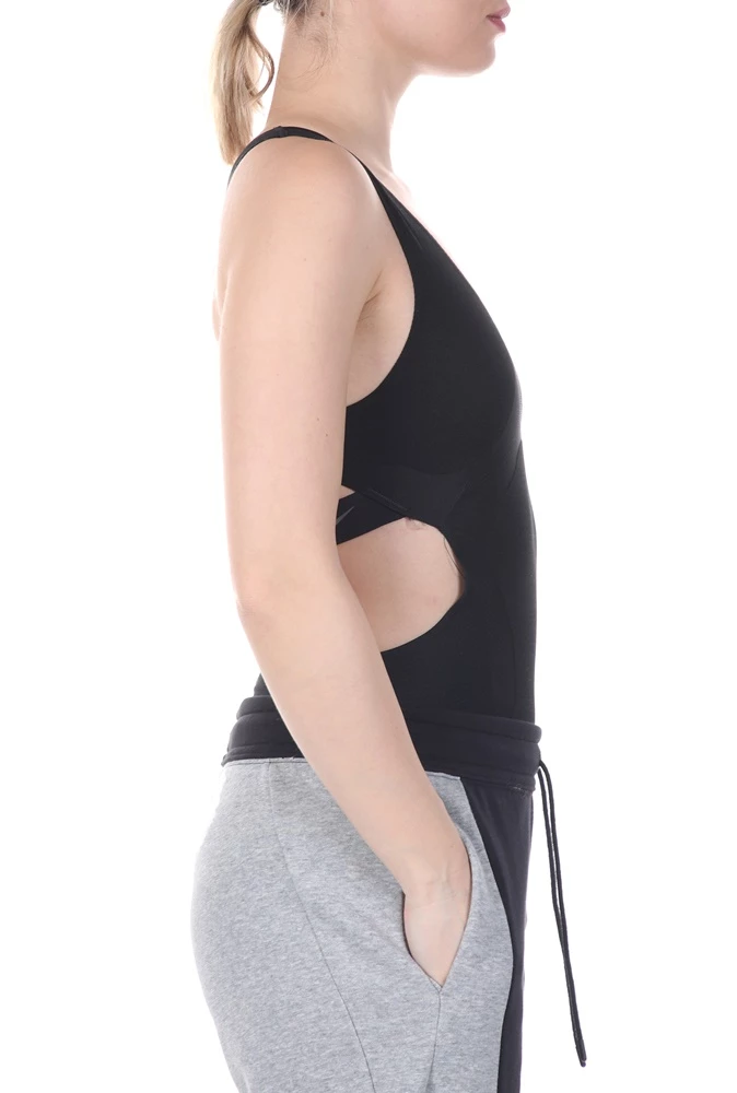 Γυναικείο κορμάκι NIKE σε μαύρο χρώμα. Κατασκευασμένο από πολύ ελαφρύ και μαλακό ύφασμα που αναπνέει, και διαθέτει ειδικά σχεδιασμένες ραφές που δεν προκαλούν ερεθισμούς. Με φαρδιές τιράντες και λαιμόκοψη σε σχήμα U. Αθλητική πλάτη και μεγάλο άνοιγμα στη μέση.