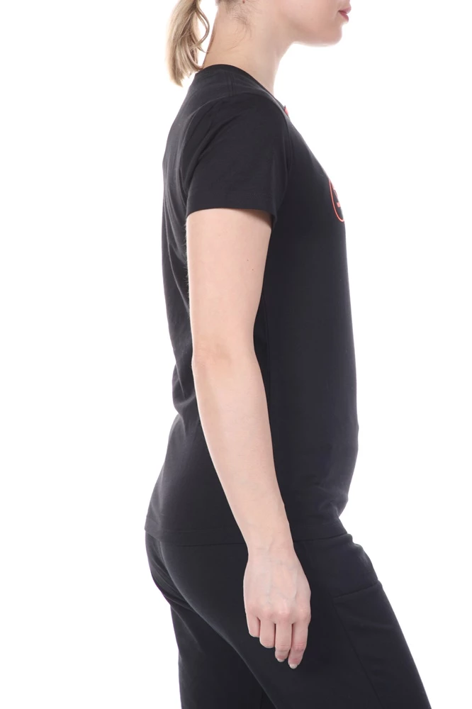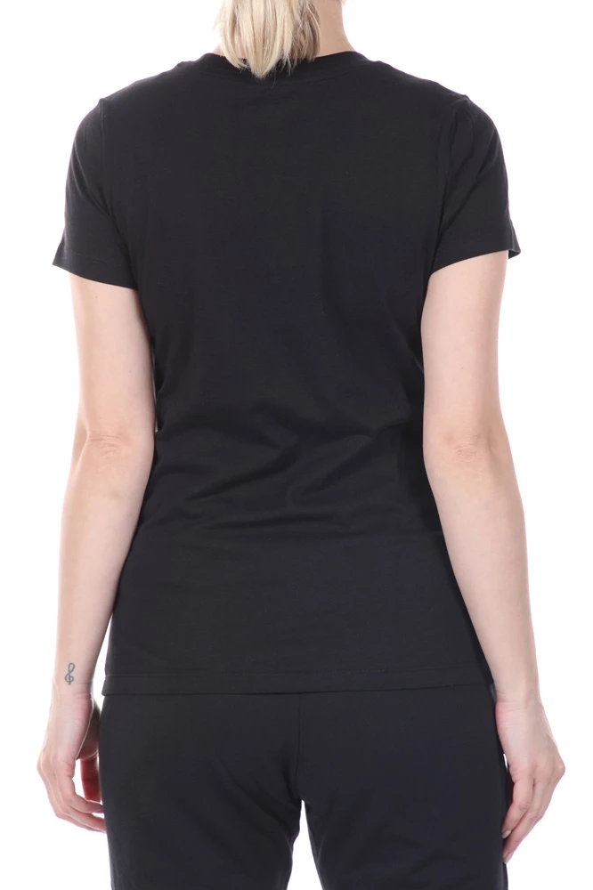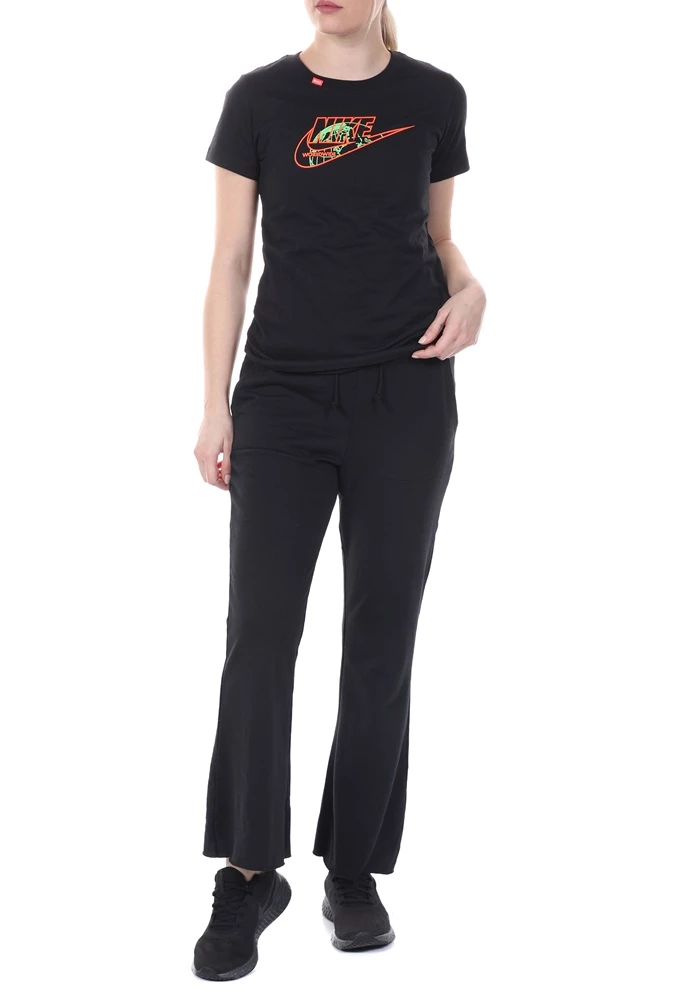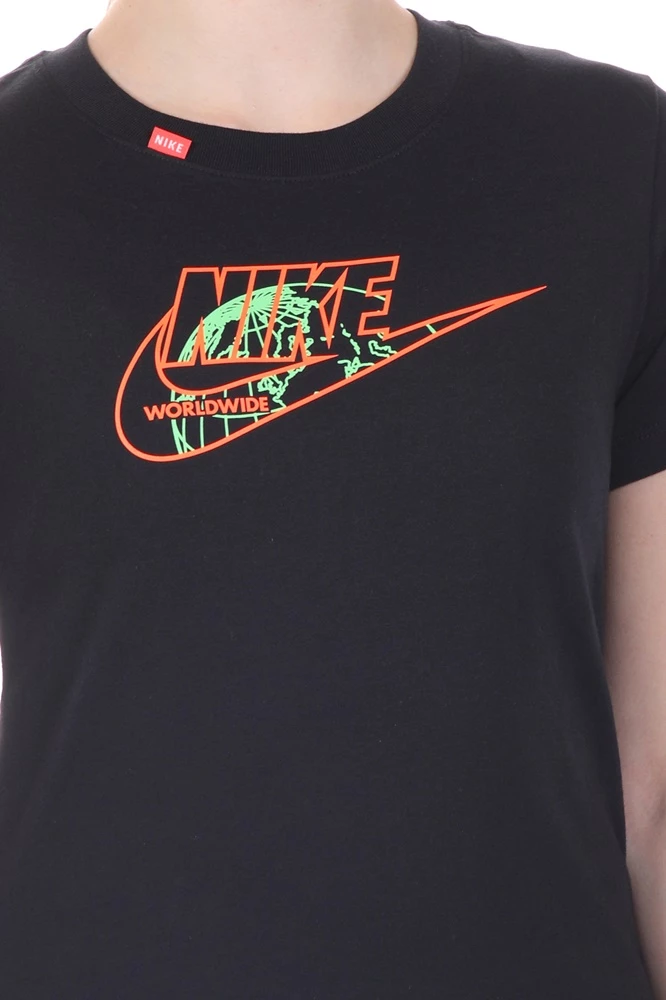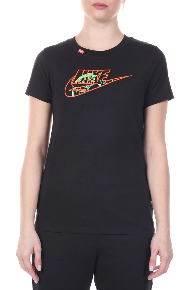 Γυναικείο t-shirt NIKE σε μαύρο χρώμα, με τυπωμένο λογότυπο μροστά. Σε ίσια γραμμή, από βαμβακερή σύνθεση. Έχει κοντά μανίκια και στρογγυλή λαιμόκοψη.