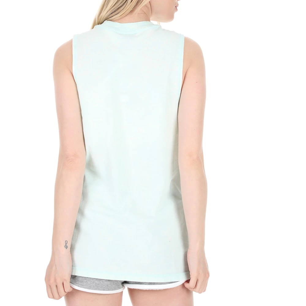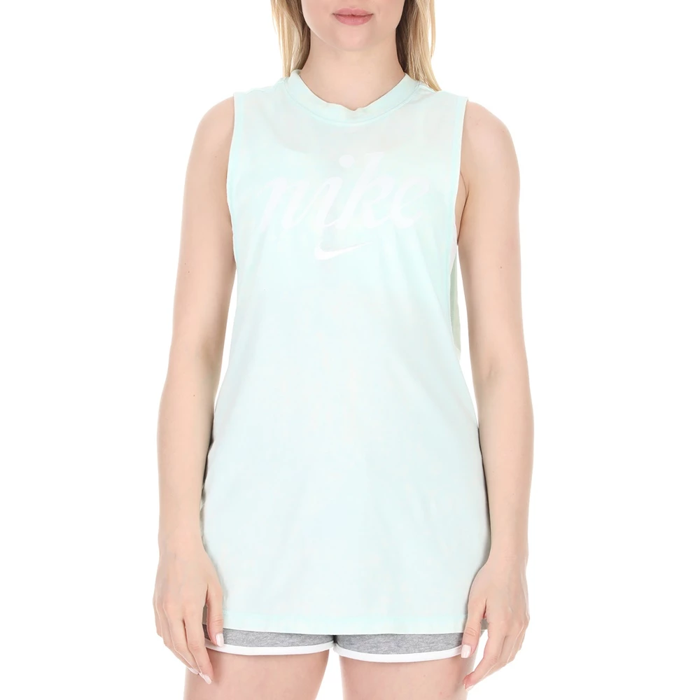 Γυναικείο t-shirt από τη NIKE σε γαλάζια απόχρωση με τυπωμένο το λογότυπο μπροστά. Από βαμβακερή σύνθεση, σε άνετη γραμμή. Είναι αμάνικο, με μεγάλο άνοιγμα στις μασχάλες και έχει στρογγυλή λαιμόκοψη.