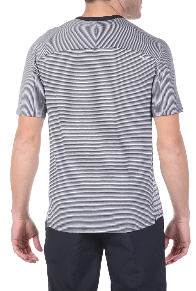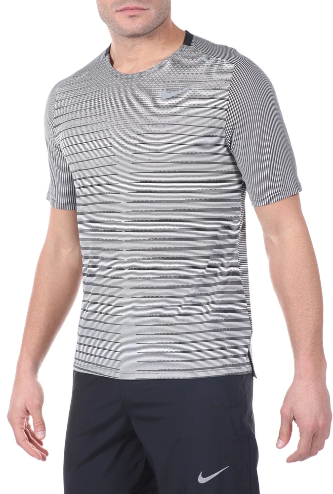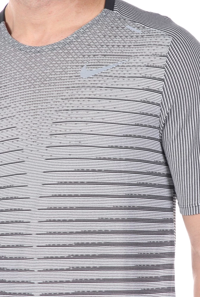 Ανδρική μπλούζα TECHKNIT TOP SS FF από τη NIKE ασπρόμαυρη με ριγέ μοτίβο. Σε ίσια γραμμή, από ανάλαφρη ύφανση με τεχνολογία Dri-FIT για στεγνή και άνετη αίσθηση. Έχει κοντά μανίκια και στρογγυλή λαιμόκοψη. Μικρά ανοίγματα στη βάση στα πλαϊνά και μακρύτερο μήκος πίσω. Ανακλαστικές λεπτομέρειες για πιο ασφαλείς διαδρομές σε συνθήκες χαμηλού φωτισμού.