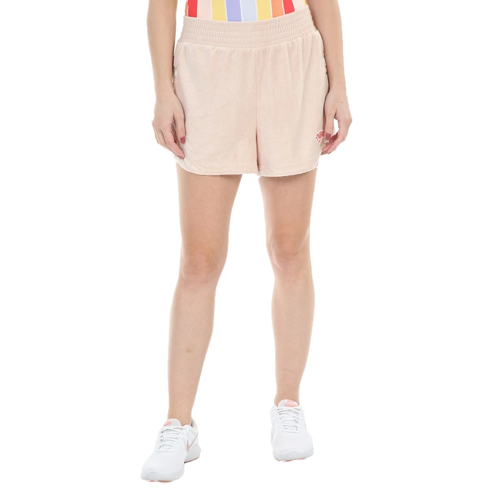 Γυναικείο σορτς ΝΙΚΕ σε μπεζ απόχρωση. Σε άνετη γραμμή, από βαμβακερή σύνθεση, με πετσετέ υφή. Διαθέτει λάστιχο στη μέση και ανοίγματα με κουμπάκια στα πλαϊνά.