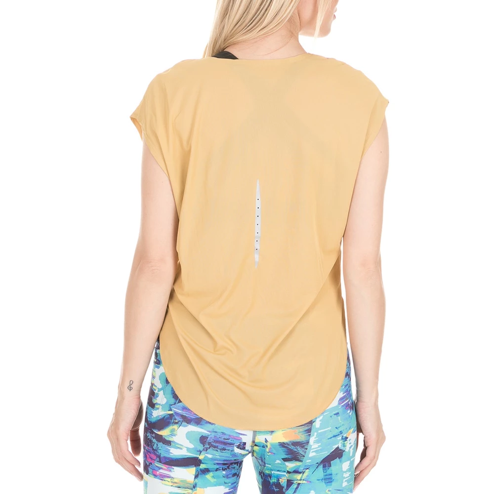 Γυναικείο running τοπ NIKE CITY SLEEK σε χρυσή απόχρωση. Σε ίσια γραμμή, με χαλαρή εφαρμογή. Από ελαφρύ και μαλακό ύφασμα που αναπνέει και επίπεδες ραφές για επιπλέον άνεση. Έχει κοντά μανίκια και στρογγυλή λαιμόκοψη. Στρογγυλεμένη βάση με βαθιά κοψίματα στα πλαϊνά για μεγαλύτερη ελευθερία κινήσεων. Ανακλαστικές λεπτομέρειες μπροστά και πίσω για καλύτερη ορατότητα σε συνθήκες χαμηλού φωτισμού.
