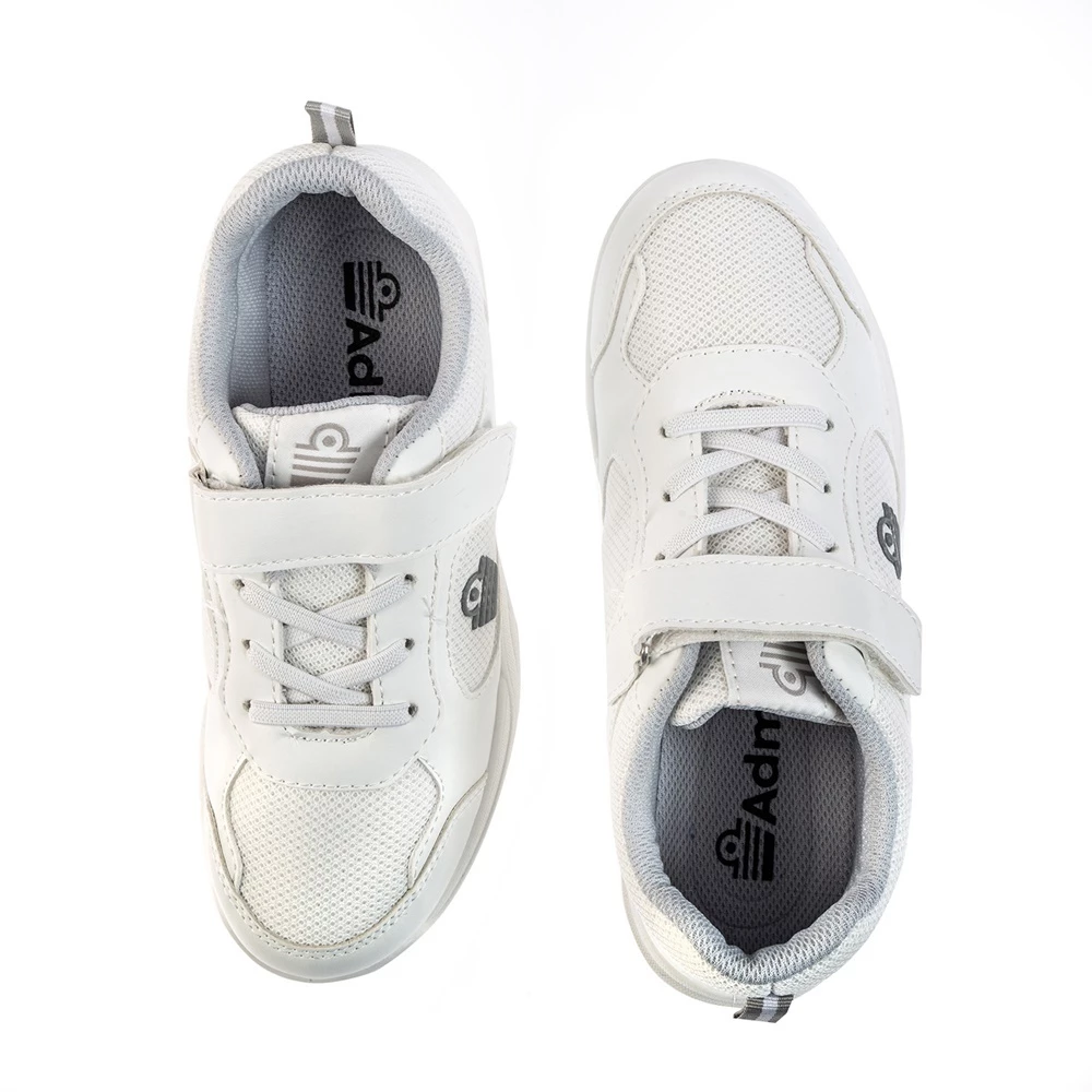 Παιδικά αθλητικά παπούτσια Malom από την Admiral σε λευκό χρώμα. Έχουν κλασσικό σχεδιασμό γα καθημερινή χρήση, με ελαστικά σταθερά κορδόνια και κλείσιμο με velcro. Διαθέτουν μαλακό πάτο για άνεση στο περπάτημα και το παιχνίδι κι επιφάνειες από mesh για την καλύτερη αναπνοή του πέλματος.