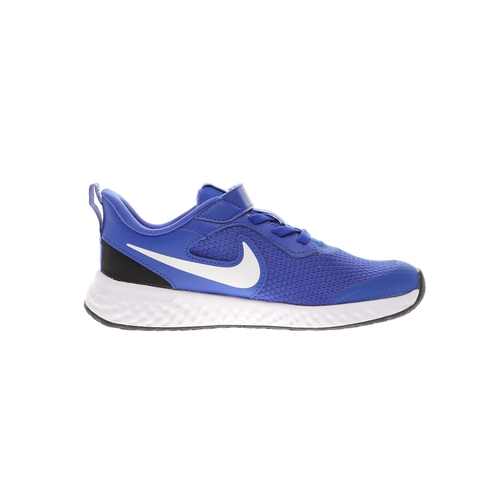 Παιδικά αθλητικά παπούτσια Nike Revolution 5 (PSV) σε μπλε απόχρωση Ανάλαφρο επάνω μέρος από πλέγμα, με επικαλύψεις από δέρμα σουέντ χωρίς ραφές, για δροσερή εφαρμογή και σταθερή αίσθηση. Ενδιάμεση σόλα από αφρό για αντικραδασμική προστασία. Εύκαμπτη εξωτερική σόλα από καουτσούκ με βαθιές αυλακώσεις για φυσική κίνηση. Ελαστικά κορδόνια και velcro για εύκολη εφαρμογή και αφαίρεση.