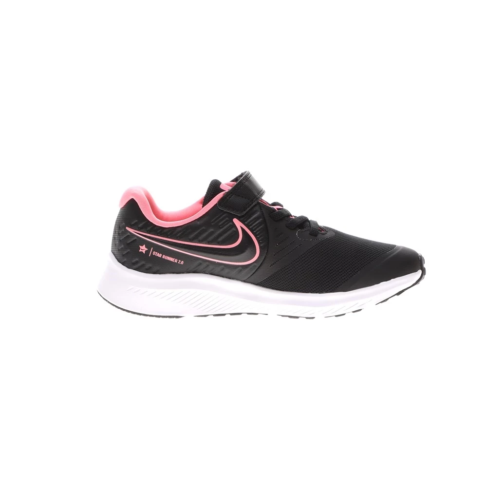 Παιδικά αθλητικά παπούτσια Nike Star Runner 2 σε μαύρο χρώμα με ροζ λεπτομέρειες. Λιτή σχεδίαση, με ανάλαφρο διχτυωτό ύφασμα ενιαίας στρώσης, μίνιμαλ επικαλυπτόμενες φάσες χωρίς ραφές και απαλό αφρό κάτω από το πέλμα, για επαναστατική άνεση.